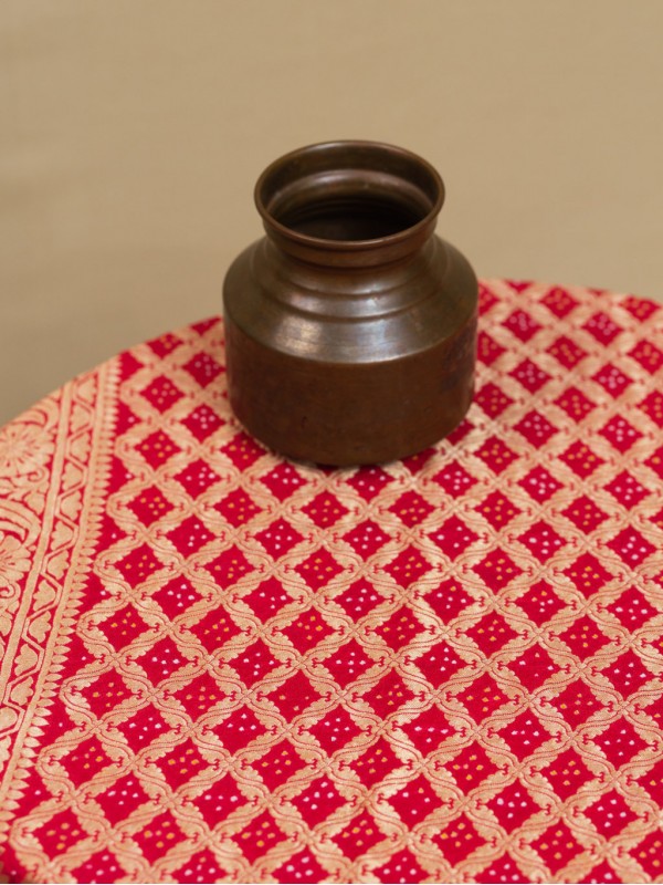 Banarasi Bandhej Lehenga - Coral Red