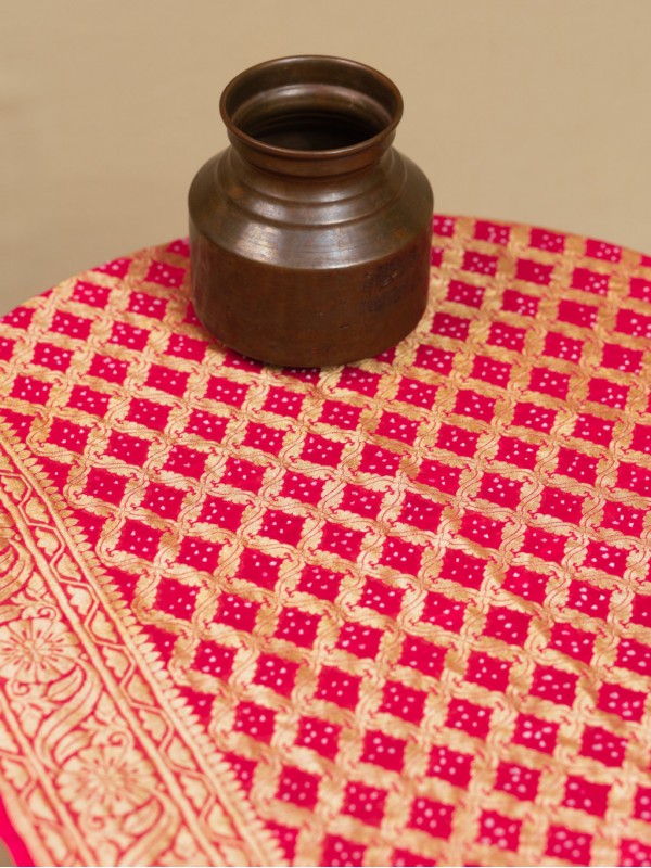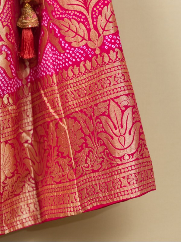 Banarasi Bandhej Lehenga - Gajri Strawberry Pink
