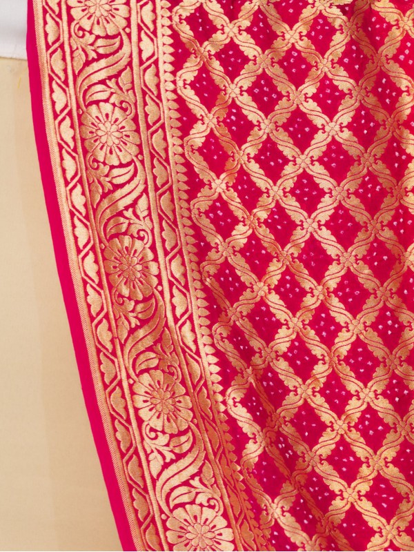 Tags: Banarasi Bandhej Lehenga - Gajri Strawberry Pink