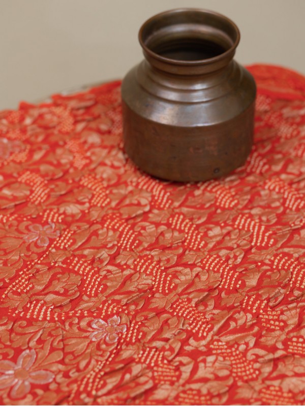 Banarasi Upada Lehenga - Orange Red Shaded