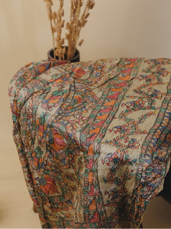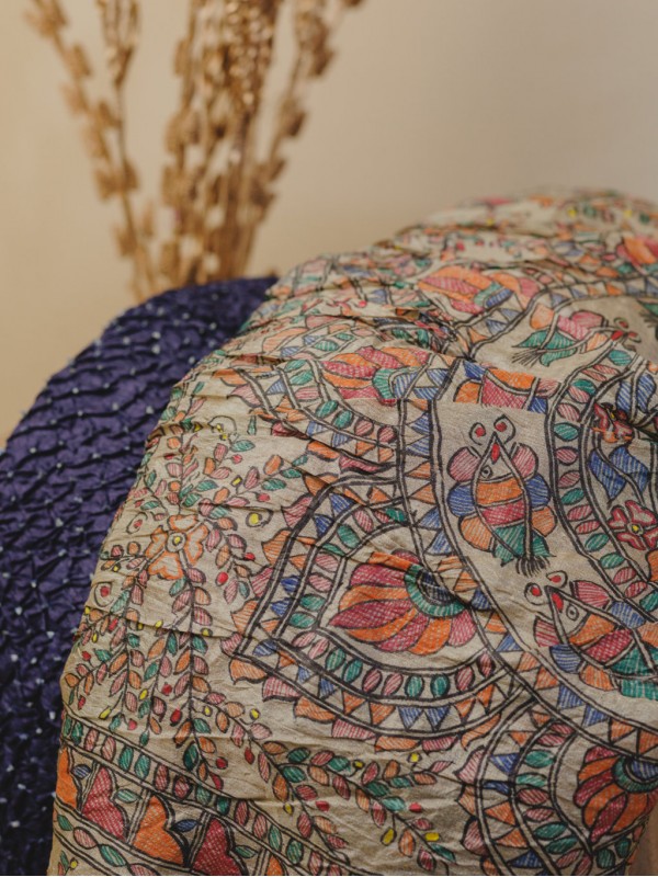 Madhubani Hand Painted Bandhani Saree With Raidana