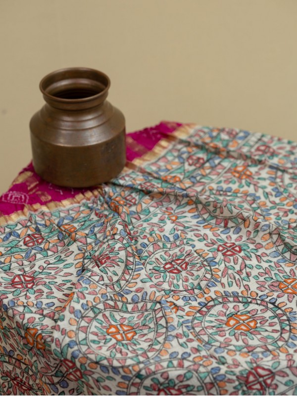 Tags: Madhubani Munga Silk Gharchola Saree - Rani