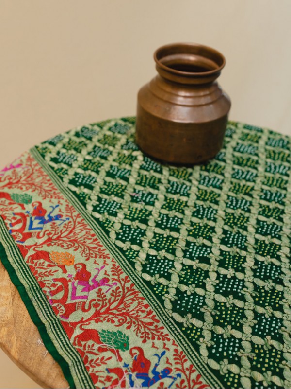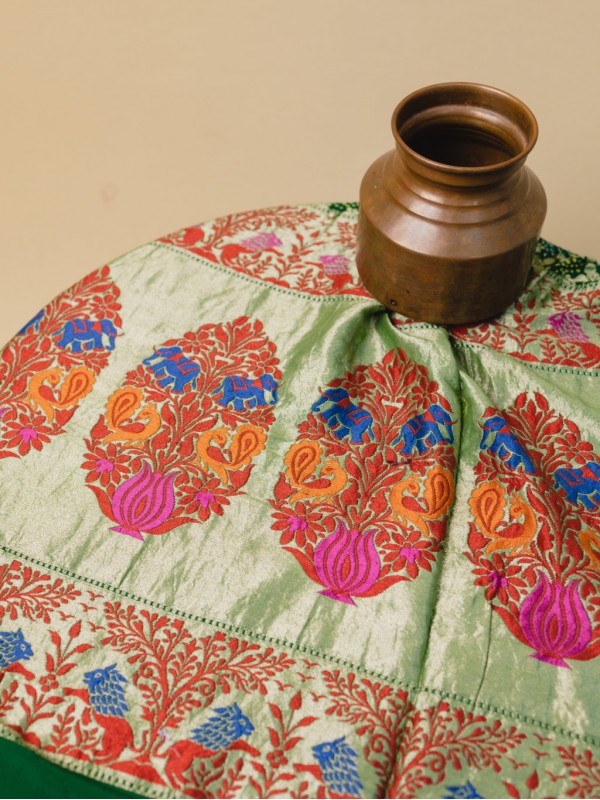 Tags: Banarasi Paithani Jaal Saree - Bottle Green