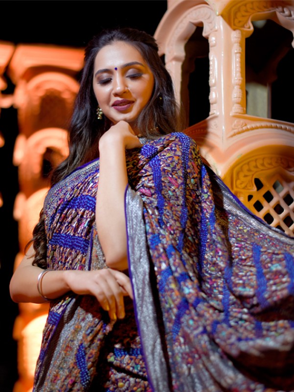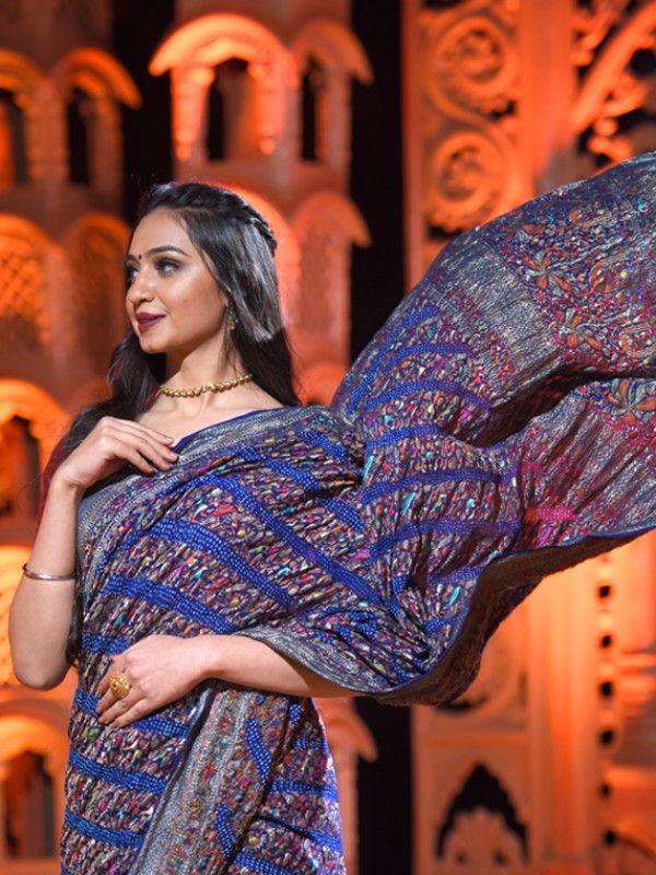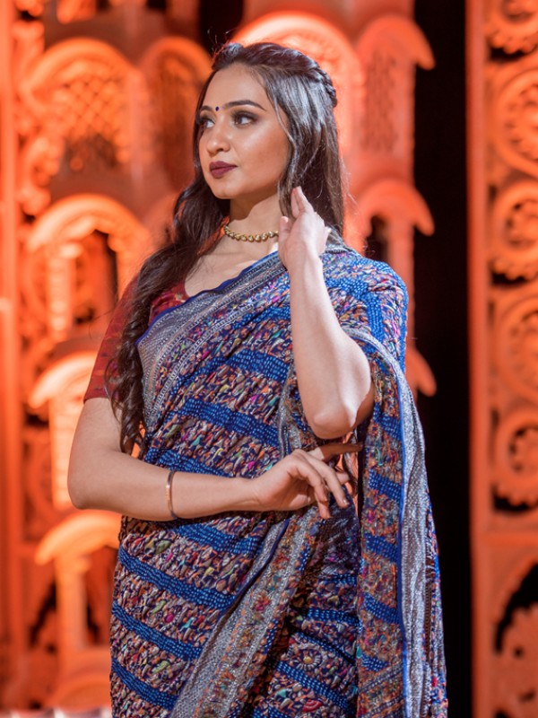 Warli is banarasi saree weaved in different style of warli painting motifs.